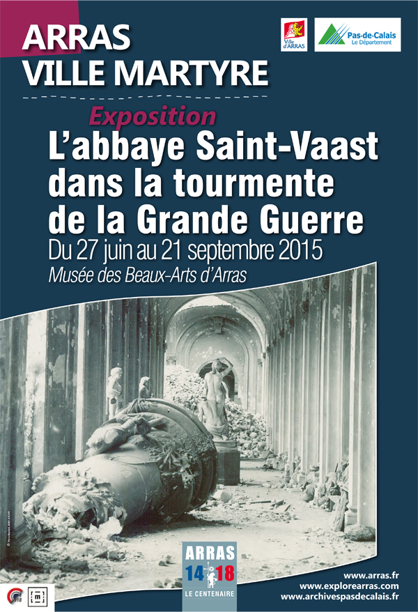 L’exposition "L’abbaye Saint-Vaast dans la Tourmente de la Grande Guerre" sera proposée au public du 27 juin au 21 septembre 2015 au Musée des Beaux-Arts d’Arras. Elle sera inaugurée, le vendredi 26 juin, par Frédéric Leturque, Maire d’Arras et Michel Dagbert, Président du Département.