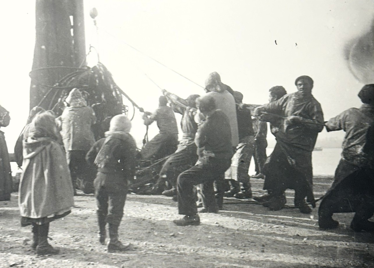Débarquement de filets emmêlés sur le quai d'Étaples, [1903-1905]. Archives départementales du Pas-de-Calais, 37 Fi 384.