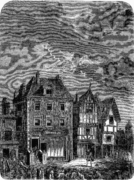 "Une émeute à Saint-Omer, à propos de l’établissement d’un paratonnerre sur la maison de Visseri de Boisvallé", Louis Figuier - Les Merveilles de la science, 1867 - 1891, Tome 1.