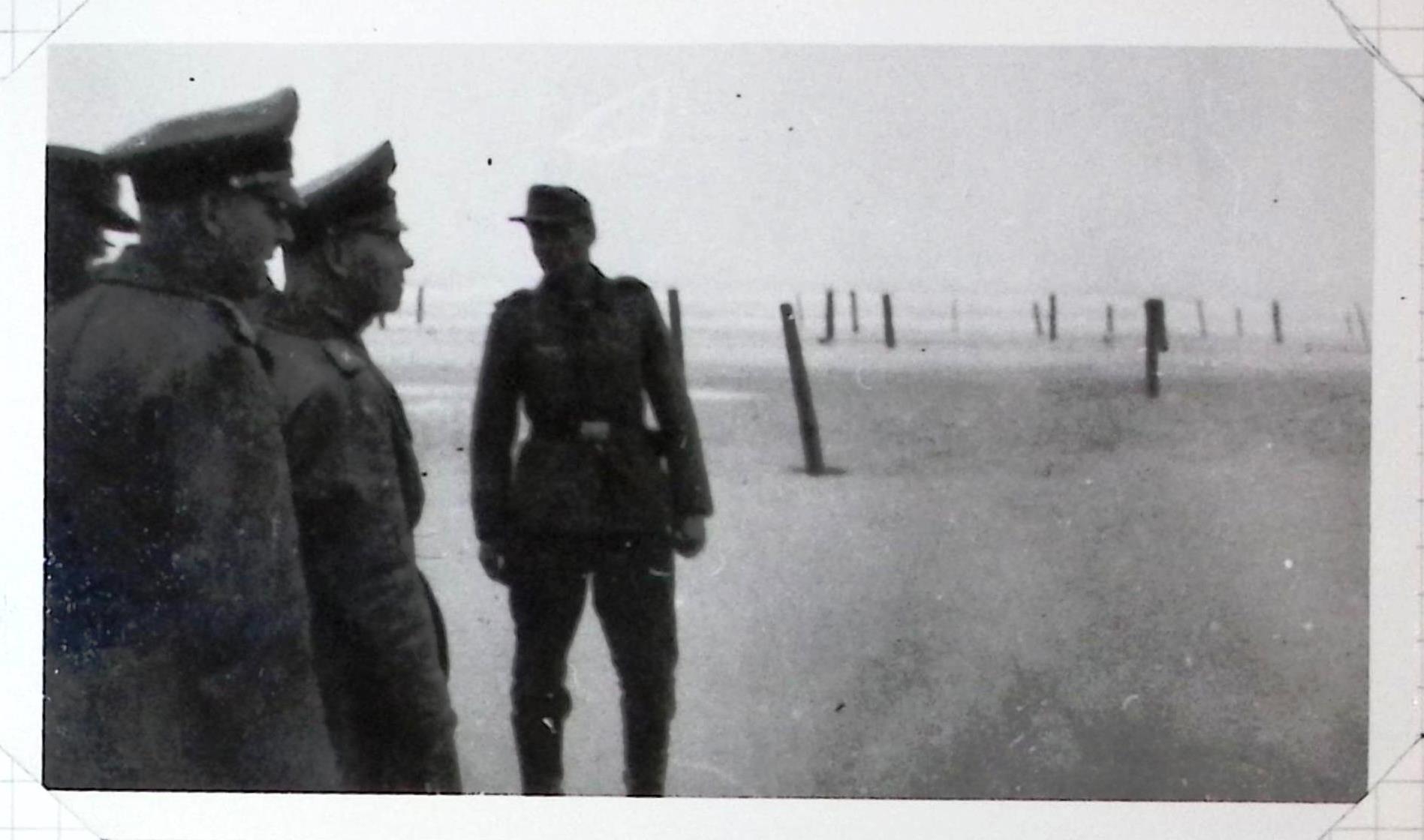 Décembre 1943. Rommel visite le mur de l'Atlantique sur la plage de Sainte-Cécile. Photographie. Archives départementales du Pas-de-Calais, 96 J 53.