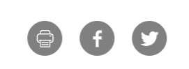 Pages éditoriales du site : en bas de page, des icônes proposent un partage sur les réseaux sociaux (Facebook, Twitter) et une impression des pages (notamment en Pdf).
