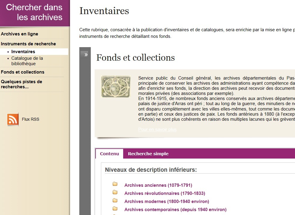 La consultation des ces instruments de recherche peut également vous servir de point de départ avant tout déplacement dans nos salles de lecture. Les inventaires de nombreux fonds non numérisés sont effectivement publiés et leur interrogation, depuis l'espace Fonds et collections de ce site, vous renseigne sur les fonds conservés dans les centres Mahaut-d'Artois et Georges-Besnier au-delà des fonds numérisés en ligne qui ne représentent qu'une infime partie de ces derniers.