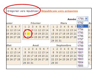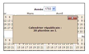 Une nouvelle fenêtre s’affiche automatiquement avec la date correspondant au calendrier républicain.
