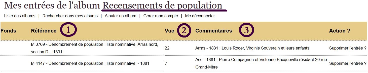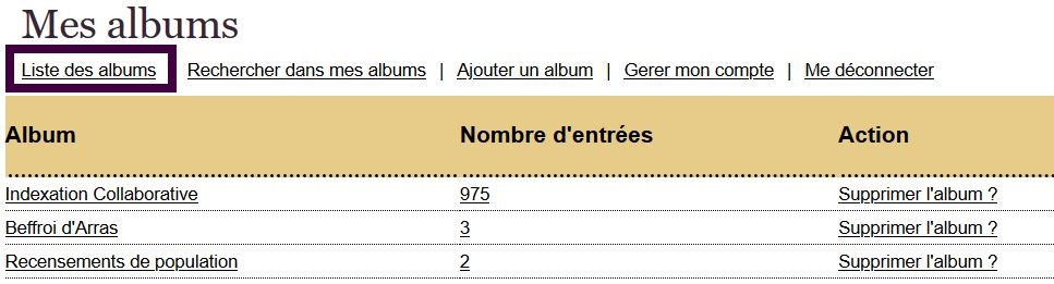 La consultation des archives en ligne ne nécessite pas la création d’un compte Albums ; il s’agit d’un service facultatif, qui vous permet, un peu à la façon de marque-pages, de mémoriser les recherches et les documents qui vous intéressent.