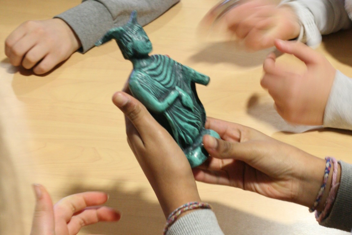Lors de cet atelier centré sur l’Antiquité gallo-romaine, l’enfant fait connaissance avec les divinités gauloises et passe en revue les figures majeures du panthéon romain. Des exemples de stèles, piliers et autres mobiliers archéologiques lui montrent comment ces dieux gaulois et romains semblent avoir cohabité, voire même dialogué. Un jeu de Mistigri permet d’appréhender la notion de syncrétisme de façon ludique. L’accent est ensuite mis sur les divers lieux de culte antiques, leurs formes et leurs lieux d’implantation, d’après quelques découvertes archéologiques du Pas-de-Calais ( fanum de Ruitz et temple de Marquise). Les offrandes qui y sont faites sont évoquées, notamment les plaques votives. La fabrication d’un ex-voto sur une feuille métallique conclut la séance.