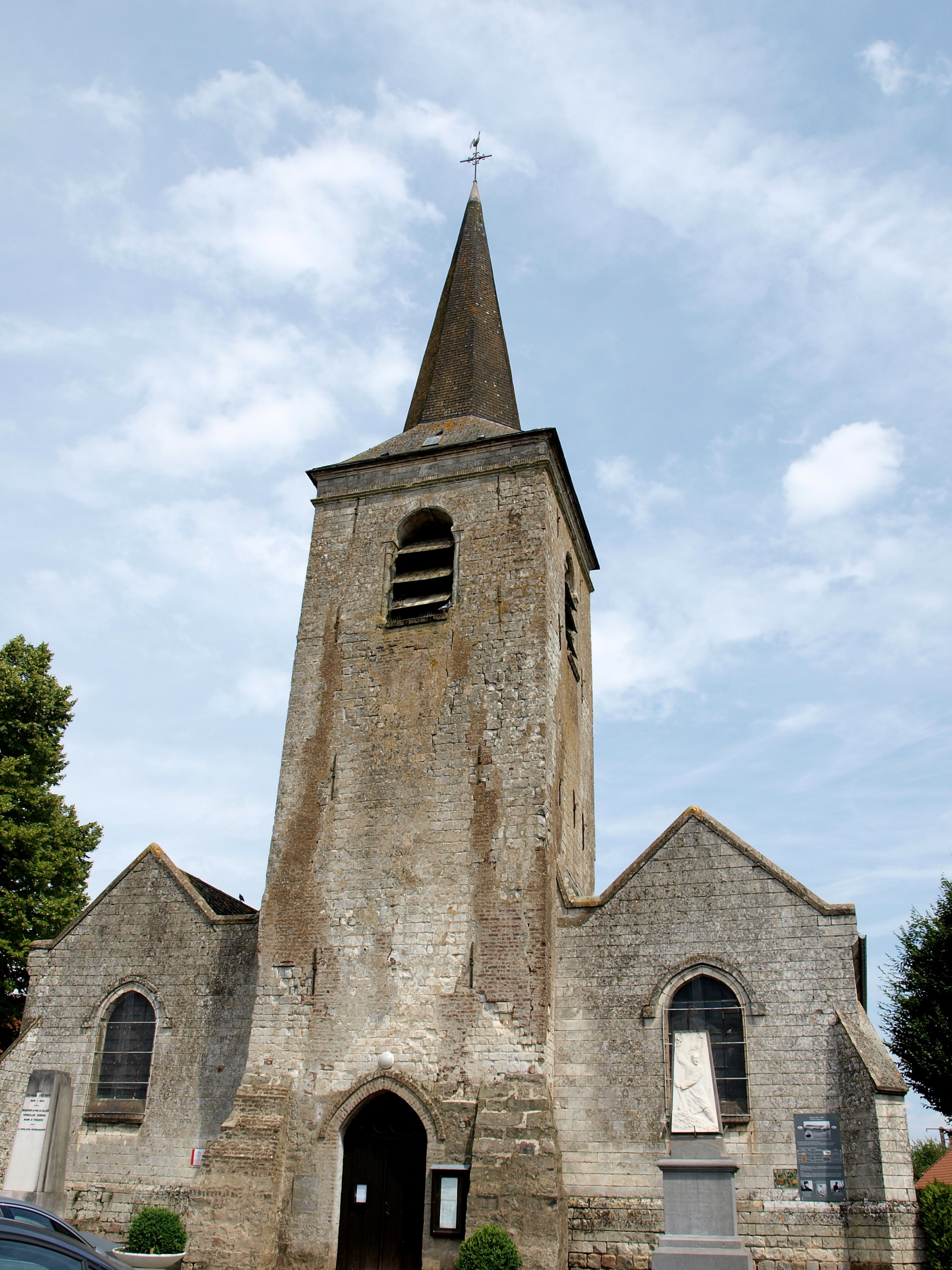 La tour de l’église construite en pierres grises a été érigée en 1773 comme l’indique une inscription au sommet de la face ouest. Elle ne possède plus l’aspect fortifié de la tour originelle, suite à de nombreuses restaurations. En effet, le clocher a été la cible des tirs ennemis pendant les Guerres mondiales. Aujourd’hui, elle est surmontée d’une flèche en ardoise simple et l’ancien chemin de ronde a disparu.