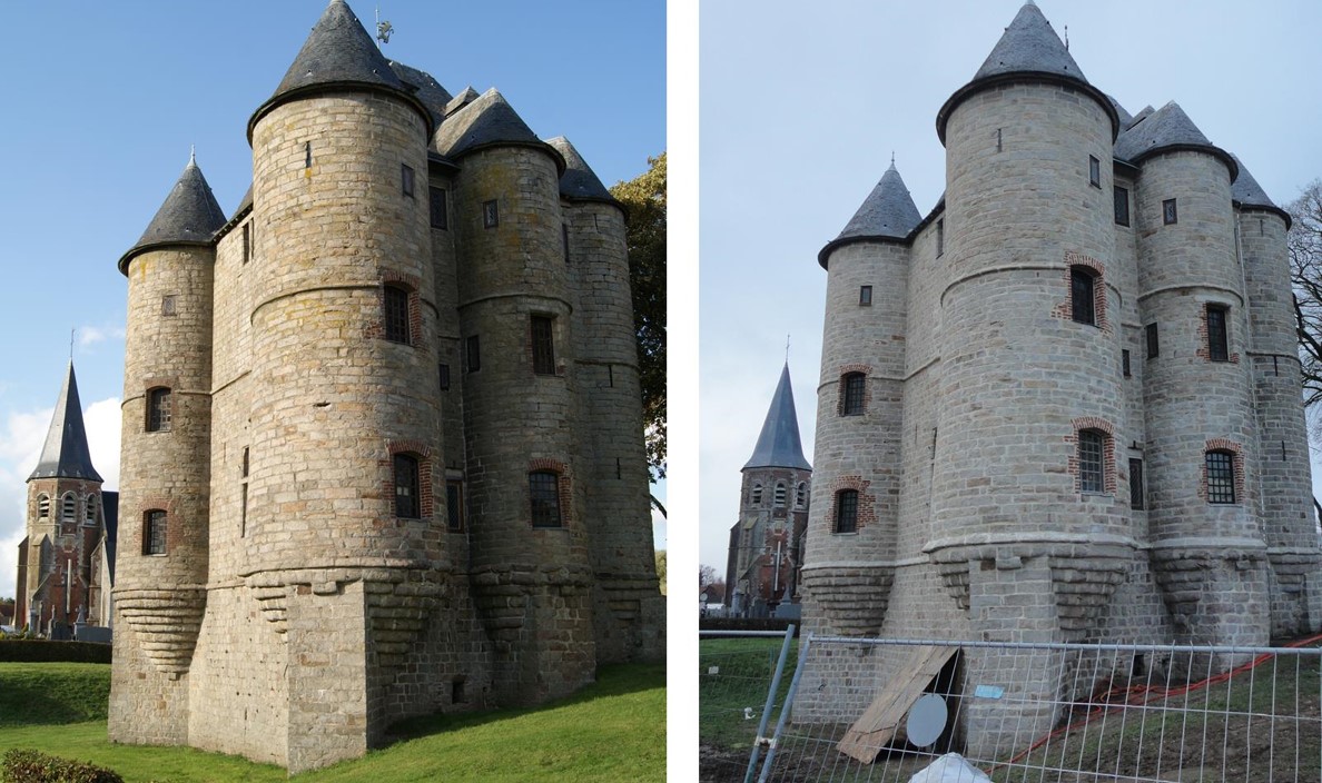 - Une étude préalable avec un diagnostic est réalisée en 2011 par l’Agence d’Architectes du patrimoine Nathalie T’Kint.