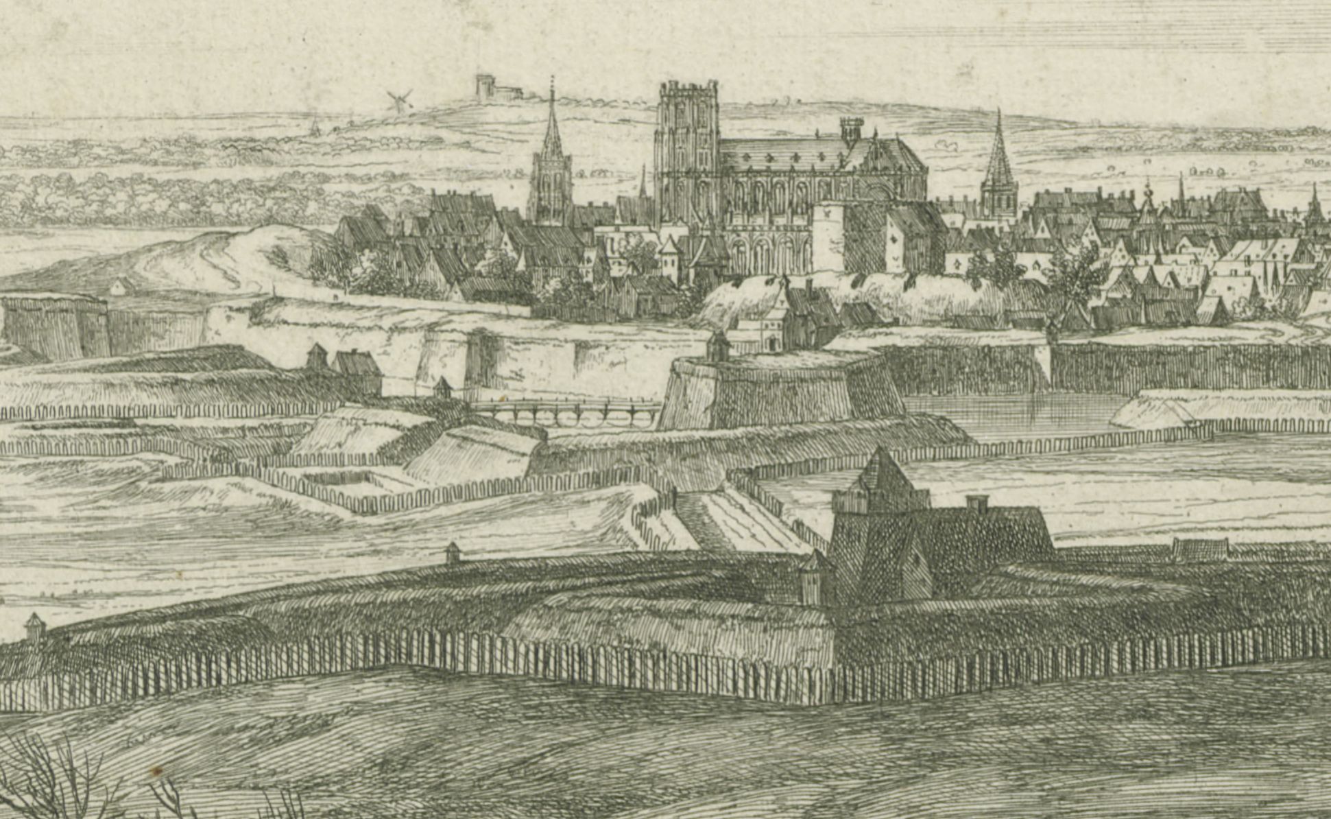 Extrait d’une reproduction d’un plan Ortelius datant de 1575 intitulé « Le vray pourtraict, et forteresse de la ville de Sainct Omer ».