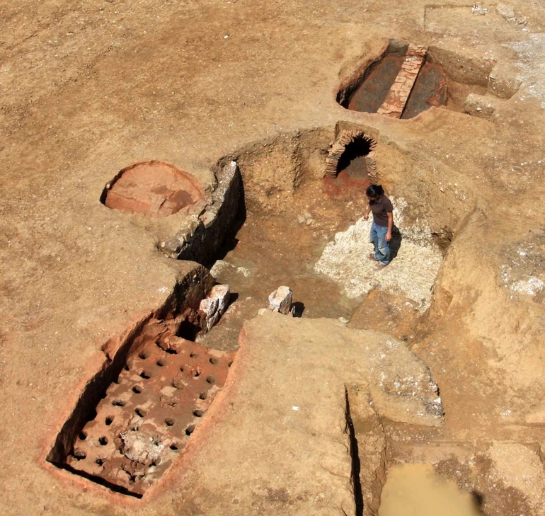 Dans le four à poteries et à tuiles, la sole percée est exceptionnellement bien conservée.
