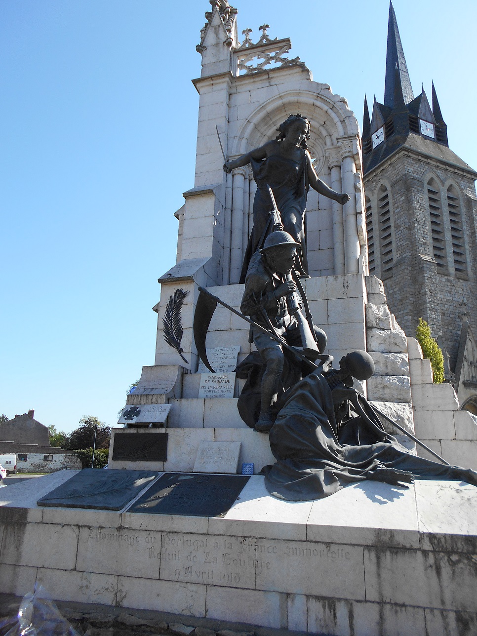 A proximité de l’édifice, un monument aux morts rend hommage aux troupes portugaises. Le 10 septembre 1923, le Conseil Municipal cède gratuitement 25 m² de terrain à la Nation Portugaise afin d’ériger un monument en l’honneur pour leurs soldats morts dans la région.